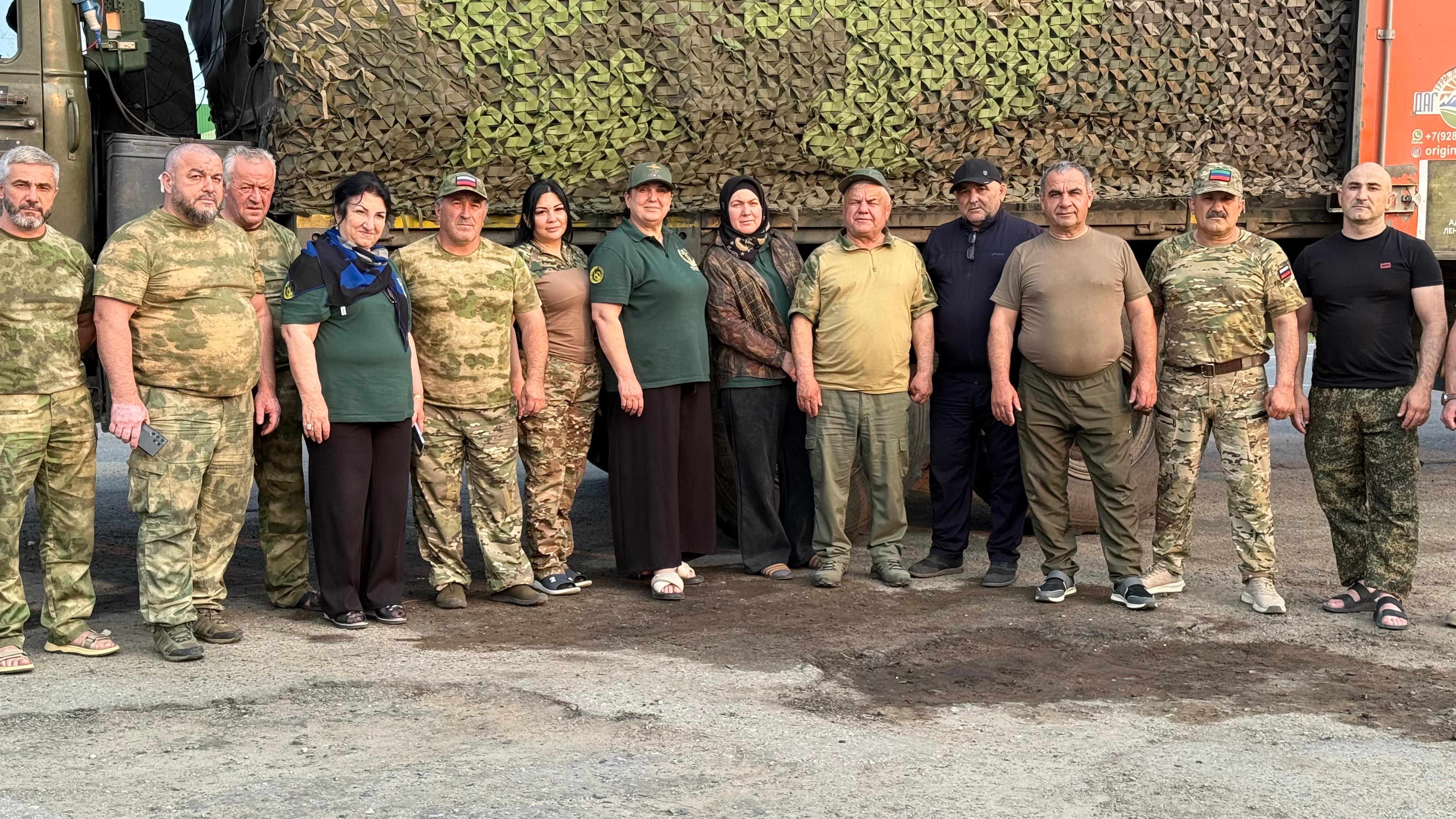 Огромный вклад в сбор гуманитарного груза постоянно вносят меценат Султанум Амирова, председатель регионального отделения ДОСААФ России Шамиль Алиев, Гасан Курбанов, Алиасаб Магомедов, Гаирбек Рамазанов, Салавутдин Амиров, Шамиль Курбанов, Абдулманап Манапов, Раджаб Раджабов, Султанай Рабаданов, Салават Султанмутов, Нияз Маллаев, Усман Салихов, Рустам Амирханов, Тимур Магомедов, Арсен Магомедов, Шамиль Магомедов, Мурад Насруллаев, Алихан Насруллаев, Самурхан Гасанов, Шарип Хабибов, Гамид Маликов, с самого начала СВО принимающие участие в приобретении квадроциклов, мотоциклов, дронов, строительных материалов, инструментов, продовольствия, спальных мешков, предметов одежды и личной гигиены, маскировочных сетей.