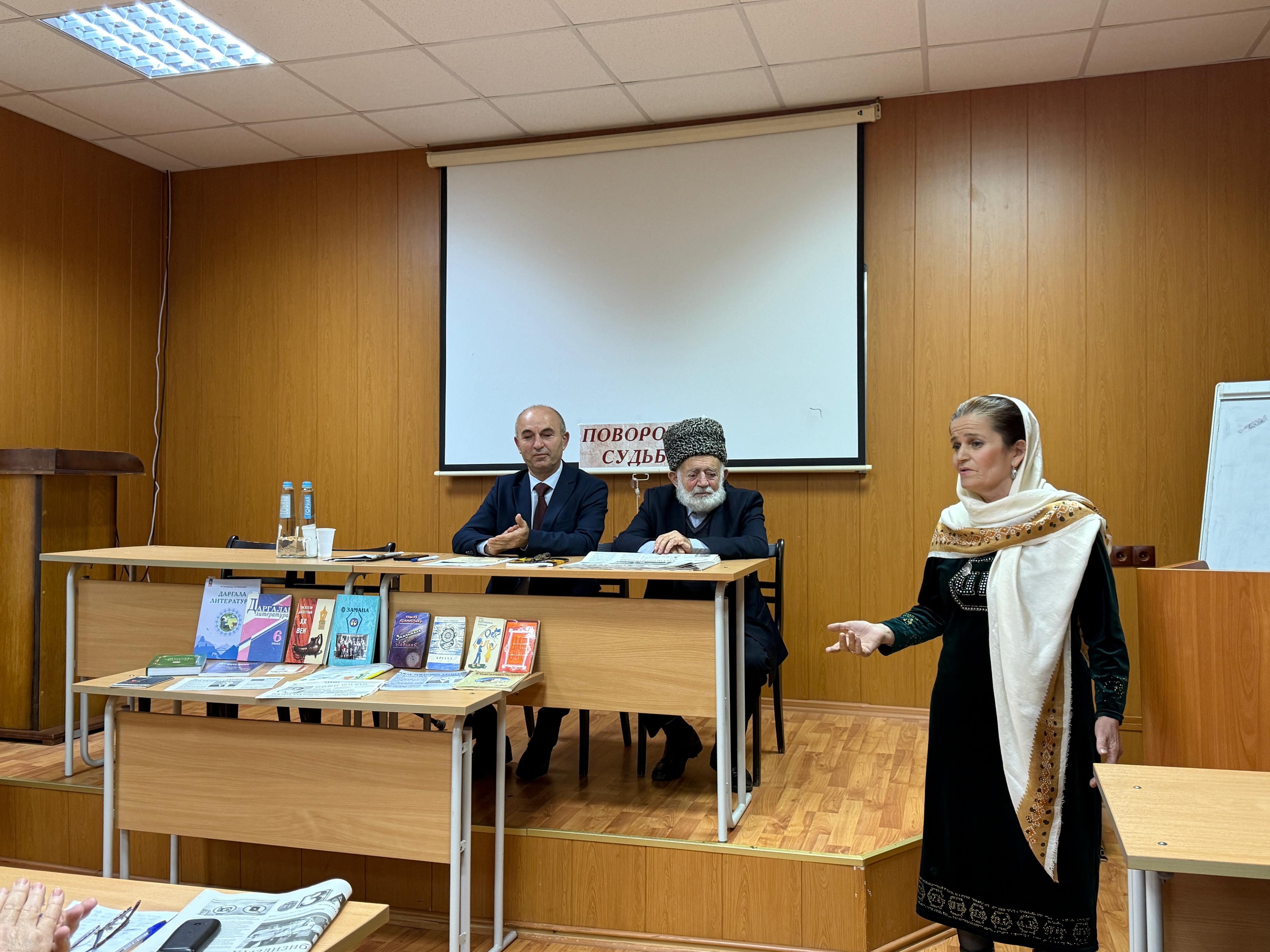 Студенты русского-дагестанского отделения блестяще продекламировали стихи Раджаба Адамадзиева, а Народная артистка Дагестана Пирдауз Камалова очаровала участников мероприятия своими песнями.