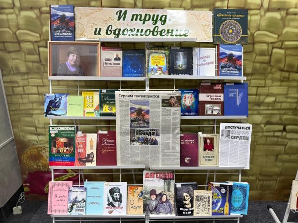 В читальном зале отдела краеведческой и национальной литературы представлена книжная выставка, посвященная 75-летию со дня рождения известного поэта, прозаика и переводчика Надежды Николаевны Тузовой. Родилась в 1950 году в г. Избербаш ДАССР. Русская. В 1981 году окончила филологический факультет Дагестанского государственного университета. Первые публикации стихов Тузовой появились в 60-е годы ХХ века на страницах республиканских газет: «Избербашский рабочий», «Новое дело», «Дагестанская правда». Член Союза писателей России с 2002 года. Первый сборник стихов «Свет и тень» вышел в1991 году. Затем в 1998 году были изданы еще два сборника: лирический – «Кораллы сердца» и сатирический – «Шизики». В 2003 году вышел новый стихотворный сборник «Небо души». В 2010 году выходит книга, рассказов «Танец молний» — которая, посвящена близкой подруге Мукминат Юсуповне Джуманбетовой. В 2020 году выходит книга «Зеркало мира» — стихи наполнены любовью к родной земле. 2024 году выходит публицистическая книга «Ангелы Победы. Дагестанцы – Герои России» — речь идет о нынешних Героях – участниках специальной военной операции на Украине. Надежда Тузова – русская душой: на мир и события, на счастье и беду, на неожиданную радость и неизбежные расставания, на подлость и малодушие, на корысть и лицедейство, на мимолетный взгляд проходящего и печаль дремлющей в одиночестве сосны, она реагирует по-своему и чисто по-христиански всепрощающе, понимающе, участливо, великодушно и благородно. И как журналист, поэт и писатель, Надежда Тузова известна в республике. Она автор немалого числа книг и публикаций. И если в поэзии Надежда Тузова признанный мастер и давно имеет свой почерк, свою нишу и стиль. В разные периоды творчества из-под её пера выходили лирические, сатирические циклы, поэмы и эпиграммы. То в изобразительном искусстве она, можно сказать, только в начале пути. Любой человек, занимающийся творчеством – художник. Мы привыкли к выражениям «художественное слово», «художественный образ в литературном произведении», «художественное осмысление музыкального изображения». Это говорит о близкородственной природе источников талантов человека. Вот и Надежда