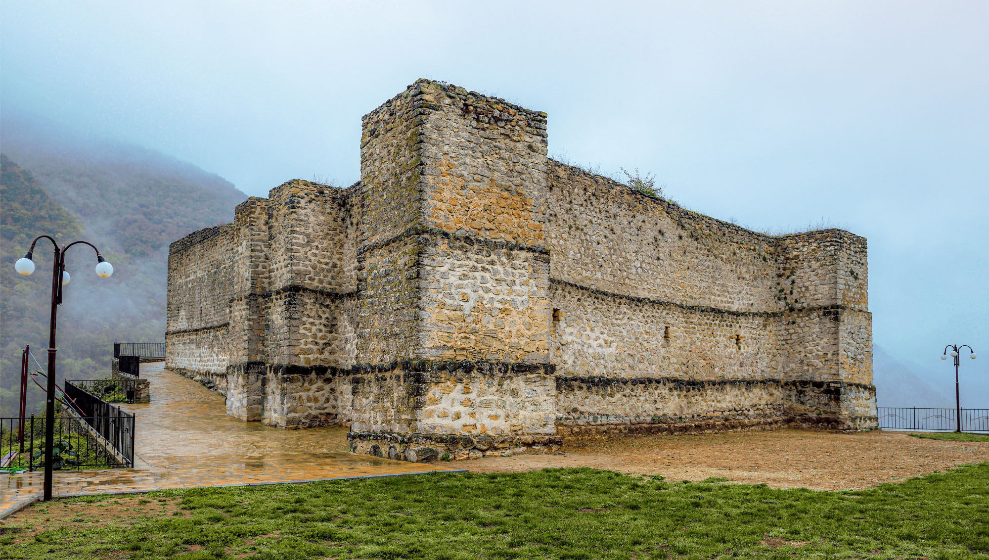За то, что варварам не позволили разрушить мечеть, Всевышний дал богатырям такую силу и здоровье, что мечеть осталась в целости и сохранности. Потом враги обманным путем ввели в заблуждение сестру семи братьев — иди, посмотри, братья тебя ищут, чтобы убить. Она стирала белье своих братьев, бросила все и пошла в ущелье. Братья в крепости совершали намаз. Подлые варвары, не имея чести и совести, ворвались в крепость, окружили братьев, склонившихся в намазе, и без всякой жалости убили семерых братьев. Было очень тяжелое сражение в этой крепости, остался только кровавый след. Услышав этот грохот — аксакалы, джигиты с кинжалами в руках поднялись на крепость. Вот что они увидели — все в крови лежали семь джигитов. Сестра искала своих братьев за ущельем. Услышав шум, она поднялась в крепость, увидела братьев, всех в крови. Враги ждали девушку в ущелье. В пятницу пошла сестра за водой на реку Рубас, наклонилась, чтобы набрать воду из реки. Враги окружили сестру, кидали в нее камнями и смеялись над ней, говорили: ты сама дала нам убить братьев, сейчас твоя очередь, и убили ее, закидав камнями.