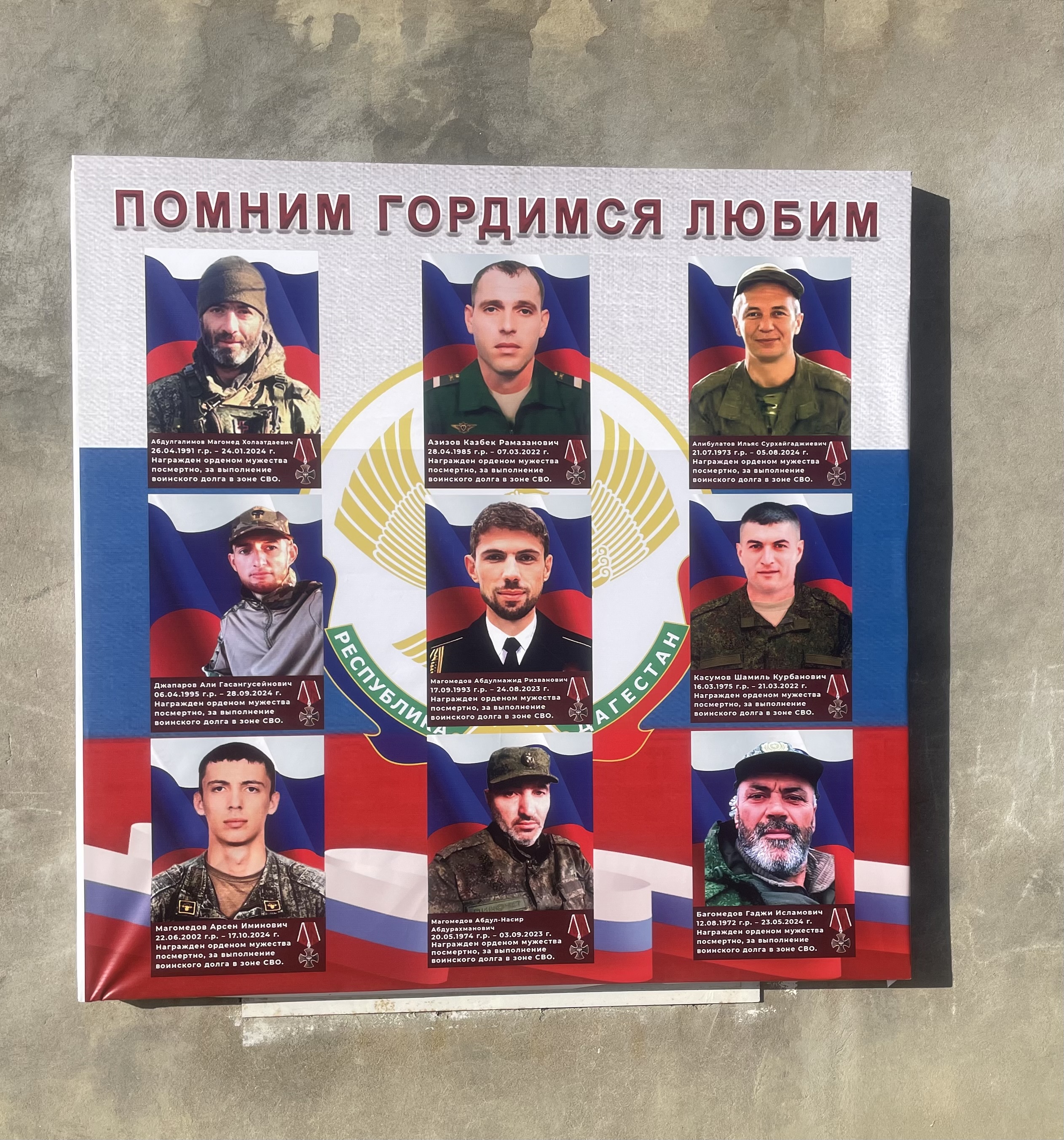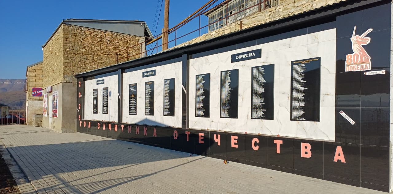 Особое место в экспозиции занимают имена павших в ходе специальной военной операции, выполнявших интернациональный долг в горячих точках, сражавшихся в годы Великой Отечественной войны, а также героев из числа красных партизан. Мемориал заложен в 2025 году семьёй кавалера ордена Мужества Магомедова Абдулмажида Ризвановича, погибшего при исполнении воинского долга на СВО.