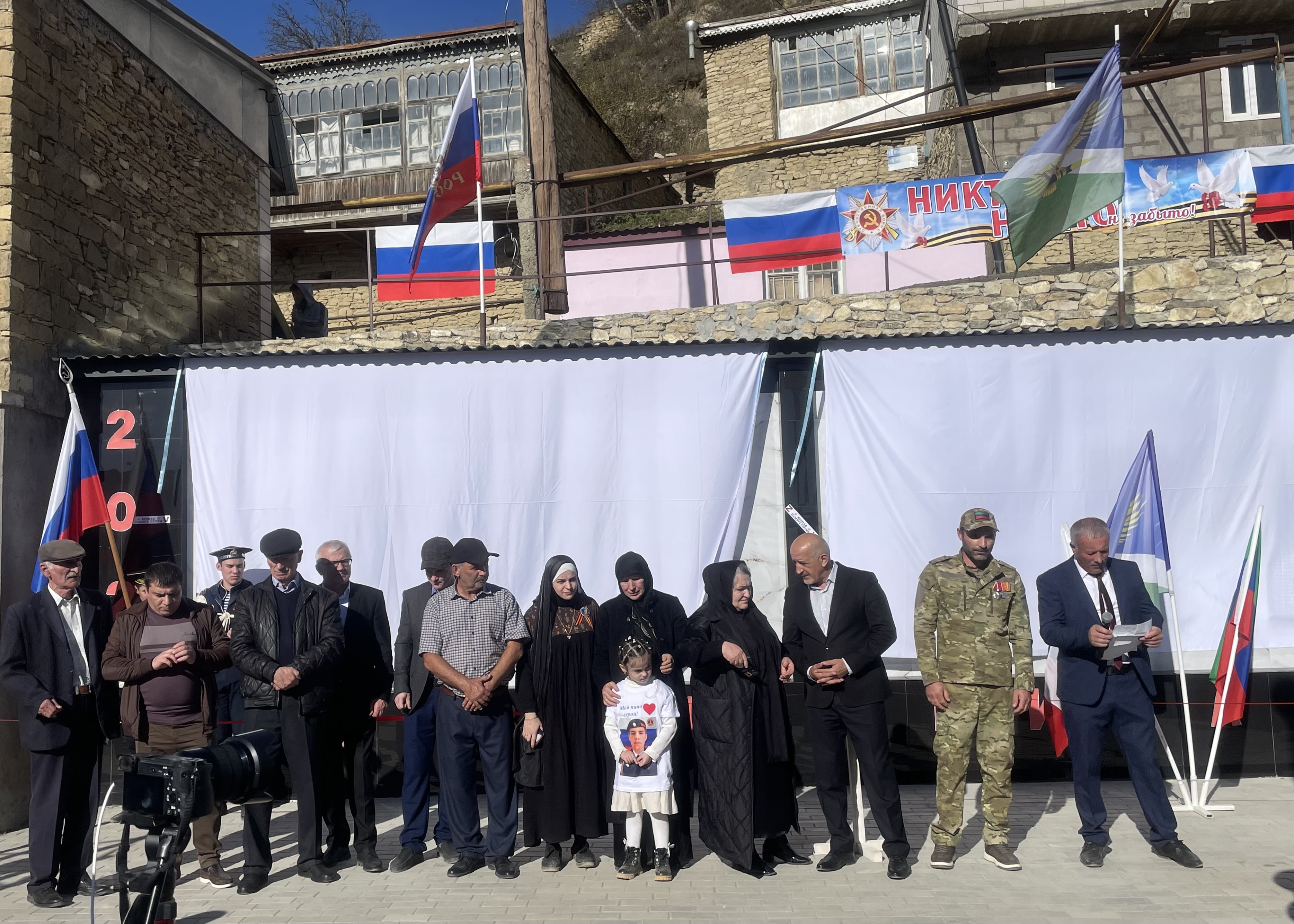 В открытии мемориала приняли участие: соучредитель МОО «Сила матерей», руководитель строительства мечети в память о погибших в СВО Месей Османова, социальный координатор по Дахадаевскому району РД от Фонда «Защитники Отечества» Кумсият Гусейнова, куратор МОО «Сила матерей» по Сергокалинскому району Зарема Абдуллаева, активистки Сайгибат Баталова, Зухра Исмаилова, Залпа Абдулжалилова и др.