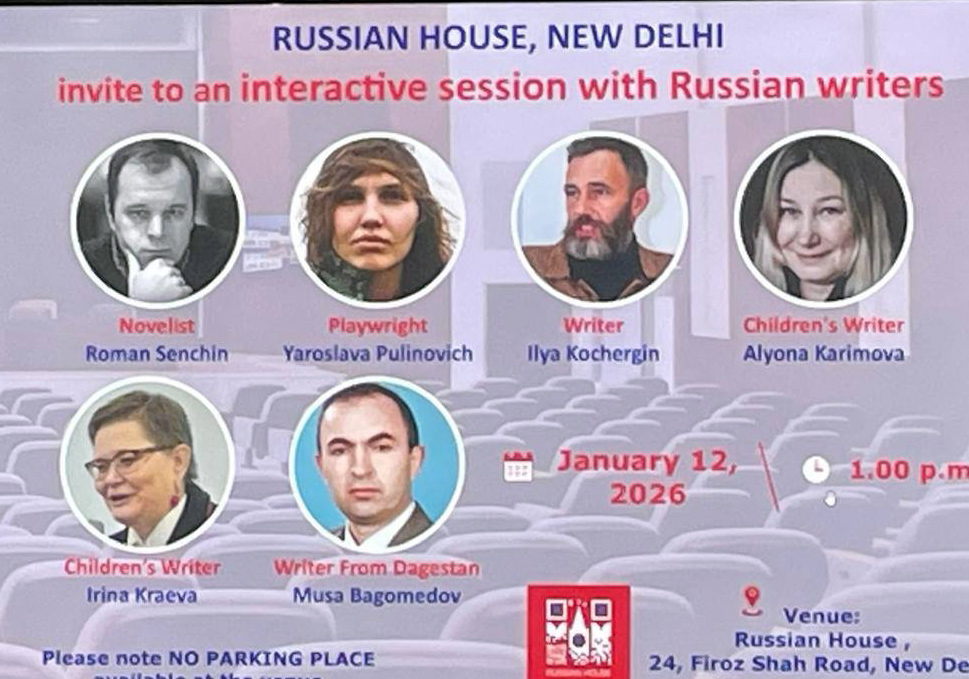 В Русском доме в Нью-Дели побывала делегация российских писателей и литературоведов. На состоявшихся здесь Литературных чтениях писатели читали свои произведения, говорили о творческих планах, о привлечении молодых людей в литературный процесс, а также об активизации литературных связей между Россией и Индией. Заведующий кафедрой дагестанских языков Дагестанского государственного университета Муса Багомедов рассказал о проводимой работе с творческой молодёжью, прочитал стихи дагестанских авторов. Попросил представителей Русского дома и коллег из Индии способствовать поступлению индийских абитуриентов в Дагестанский государственный университет, где имеются достаточно хорошие условия для получения полноценного образования.