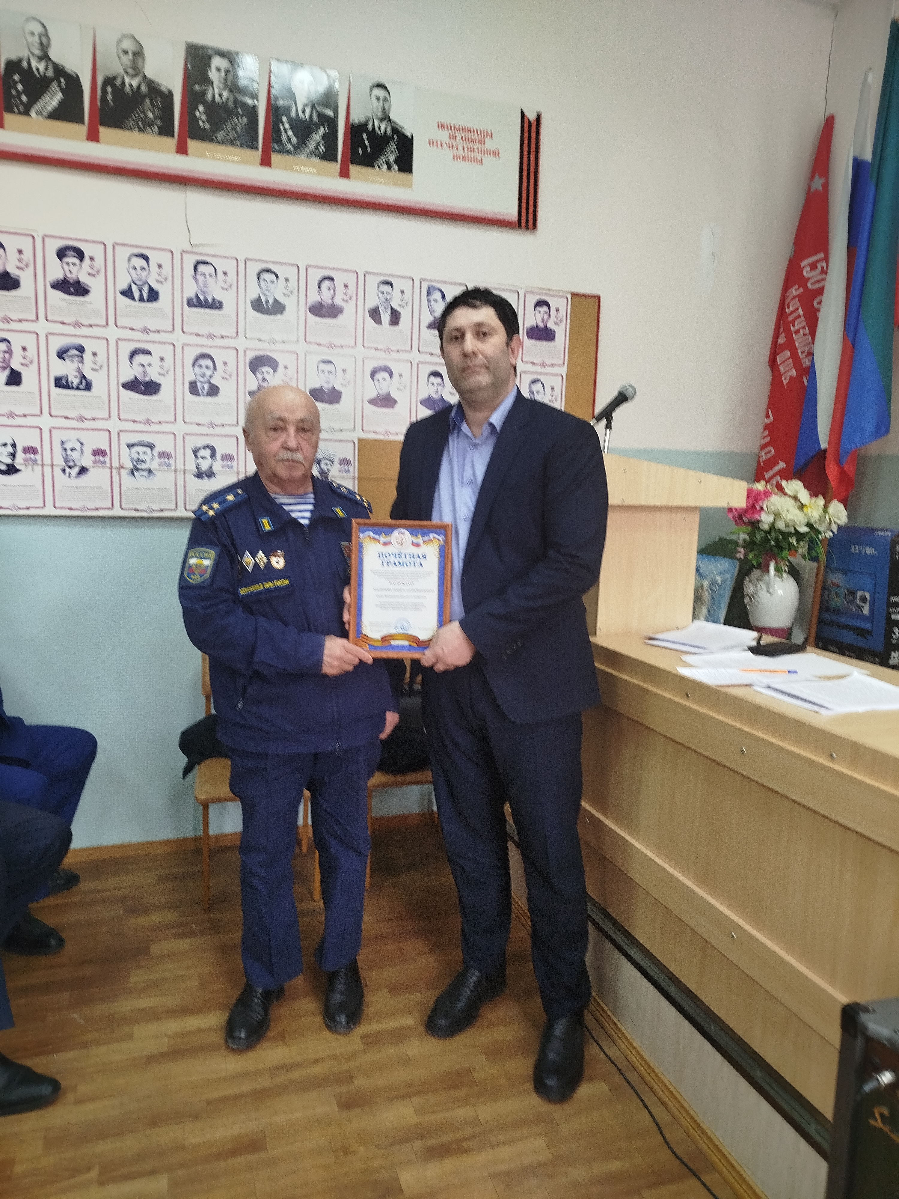 В завершение заседания Президиума члену Президиума Отделения – начальнику отдела Управления внутренней политики Администрации Главы и Правительства РД Гамзату Муслимову была вручена Почётная грамота Всероссийской организации ветеранов за большой вклад в развитие ветеранского движения.
