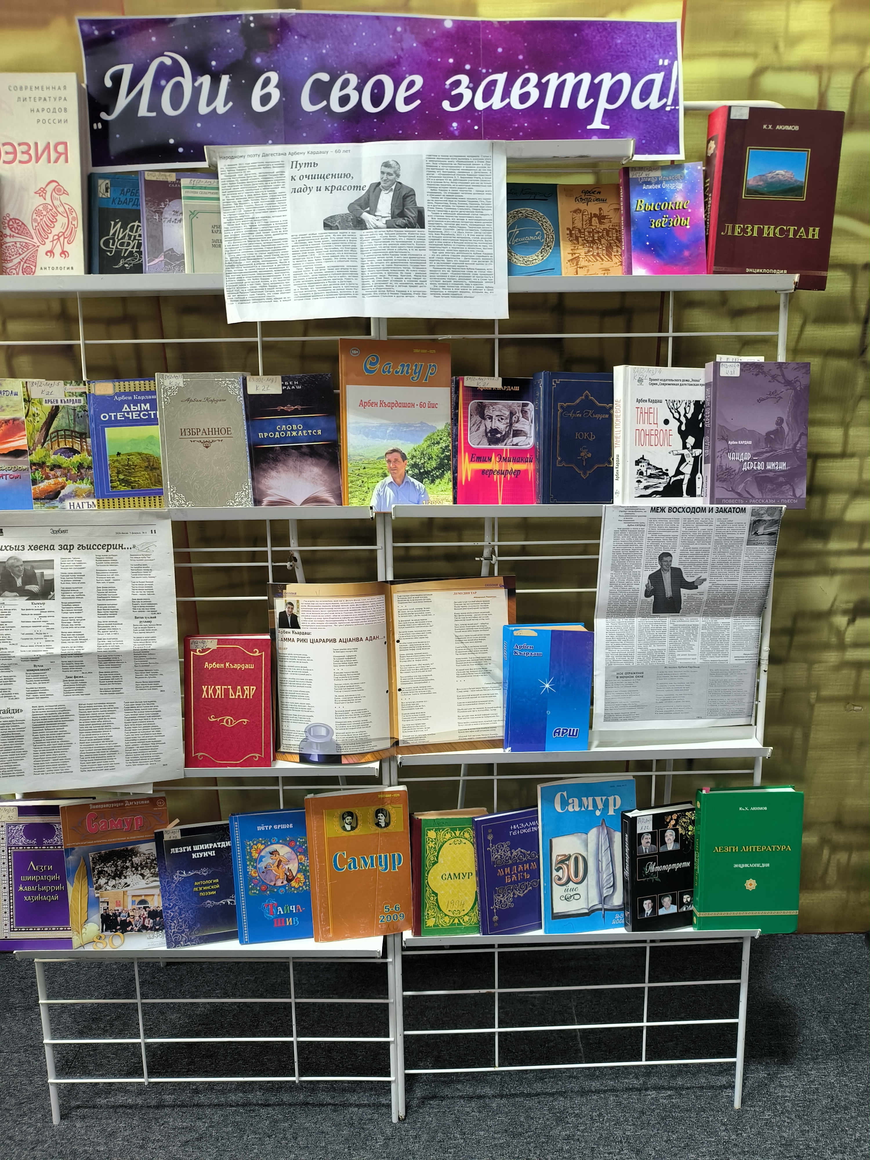 К 65-летию со дня рождения лезгинского поэта, прозаика, литературоведа, драматурга, переводчика, пишущего на родном и русском языках в отделе краеведческой и национальной литературы НБ РД им.Р.Гамзатова развернута книжная выставка « Иди в свое завтра!»… Он уже давно успешно заявил о себе за пределами родного Дагестана.