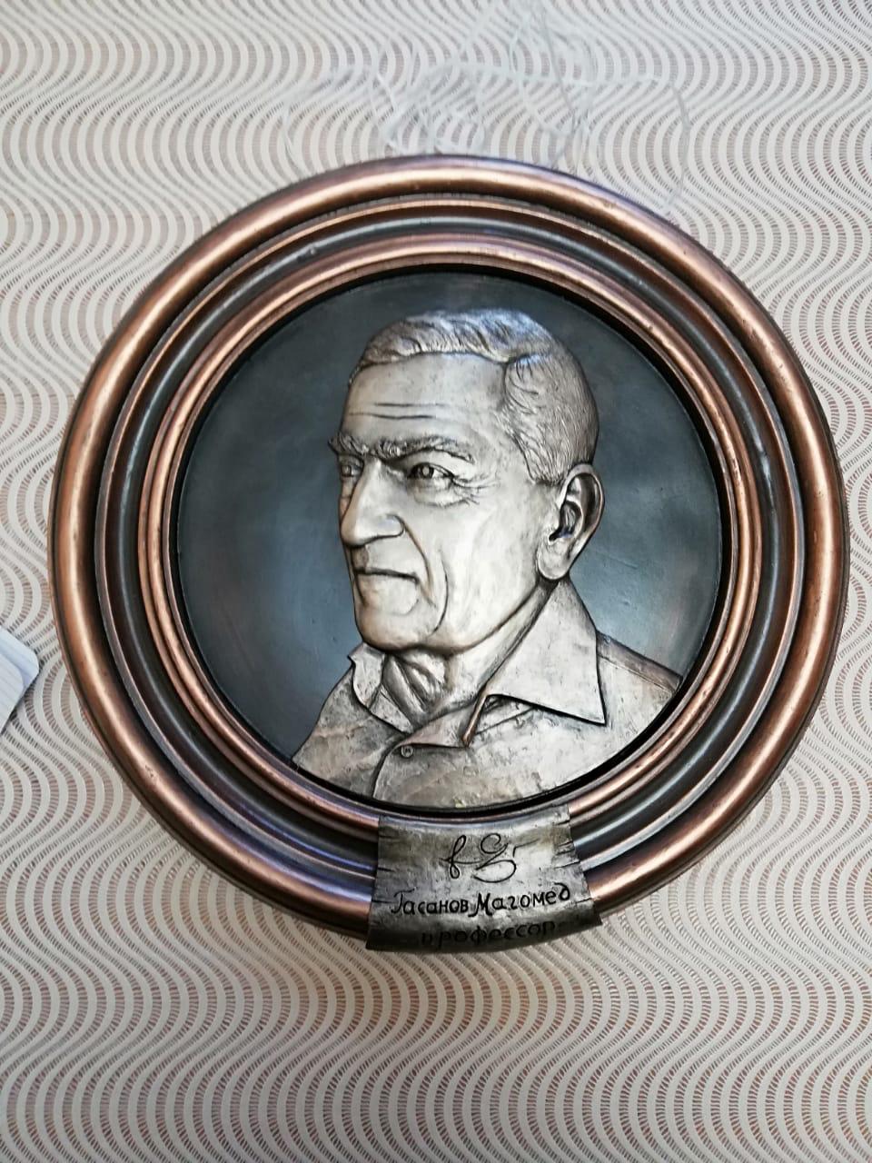 Автор – член Союза архитекторов России, скульптор Мирзабек Алимирзаев, вручая барельеф выразил свое восхищение научной деятельностью Магомеда Раджабовича, его вкладом в дагестанскую, кавказскую, российскую историческую науку.